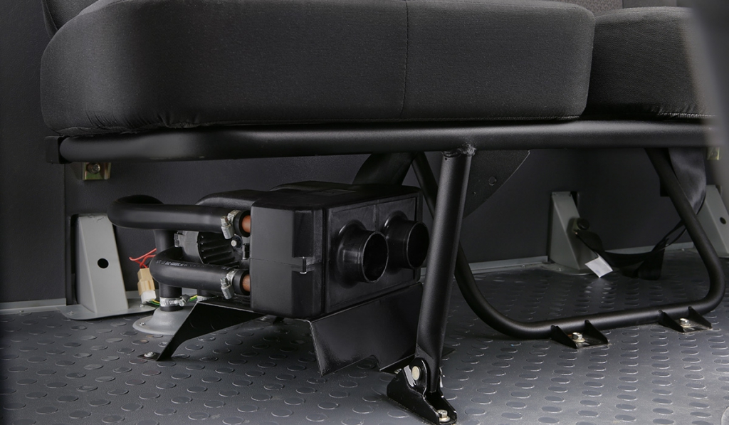 - Поясной инерционный ремень безопасности на среднем сидении по ходу движения и 3-х точечные инерционные ремни безопасности на крайних сиденьях по ходу движения